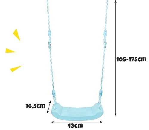Díky nastavitelné délce lan (105–175 cm) můžete houpačku přizpůsobit různým prostorům i věku dítěte. Skvěle se hodí jak do menších prostor, tak na větší zahrady.