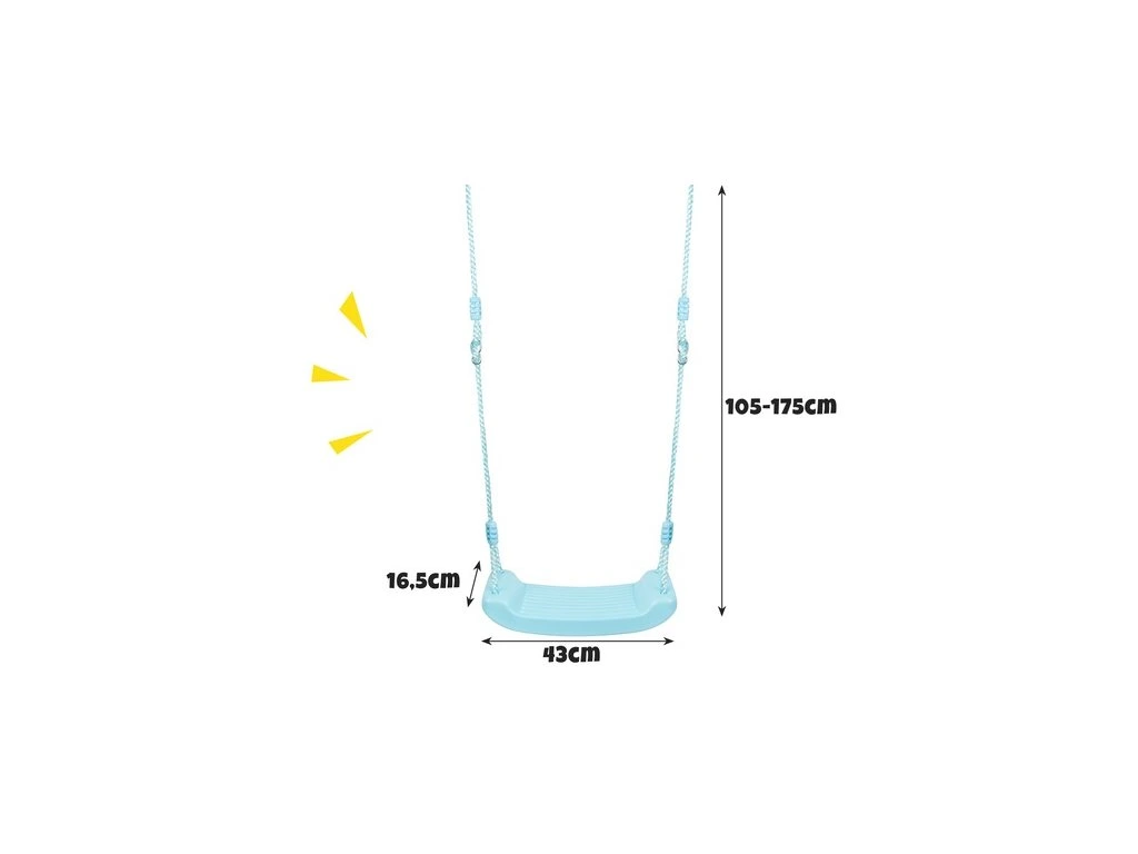 Díky nastavitelné délce lan (105–175 cm) můžete houpačku přizpůsobit různým prostorům i věku dítěte. Skvěle se hodí jak do menších prostor, tak na větší zahrady.