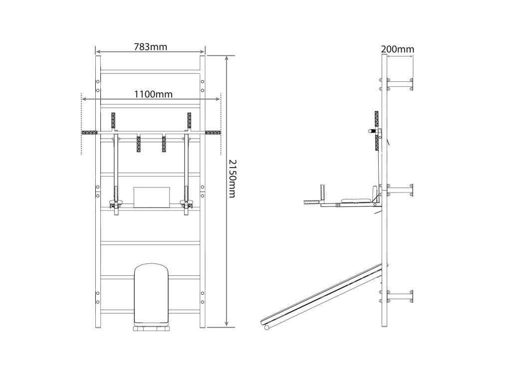 Žebřiny lze použít jako základ pro instalaci posilovací hrazdy. Díky které provedete profesionální trénink zad, paží a břicha. Vzdálenost hlavní tyče od žebřin je 60 cm.