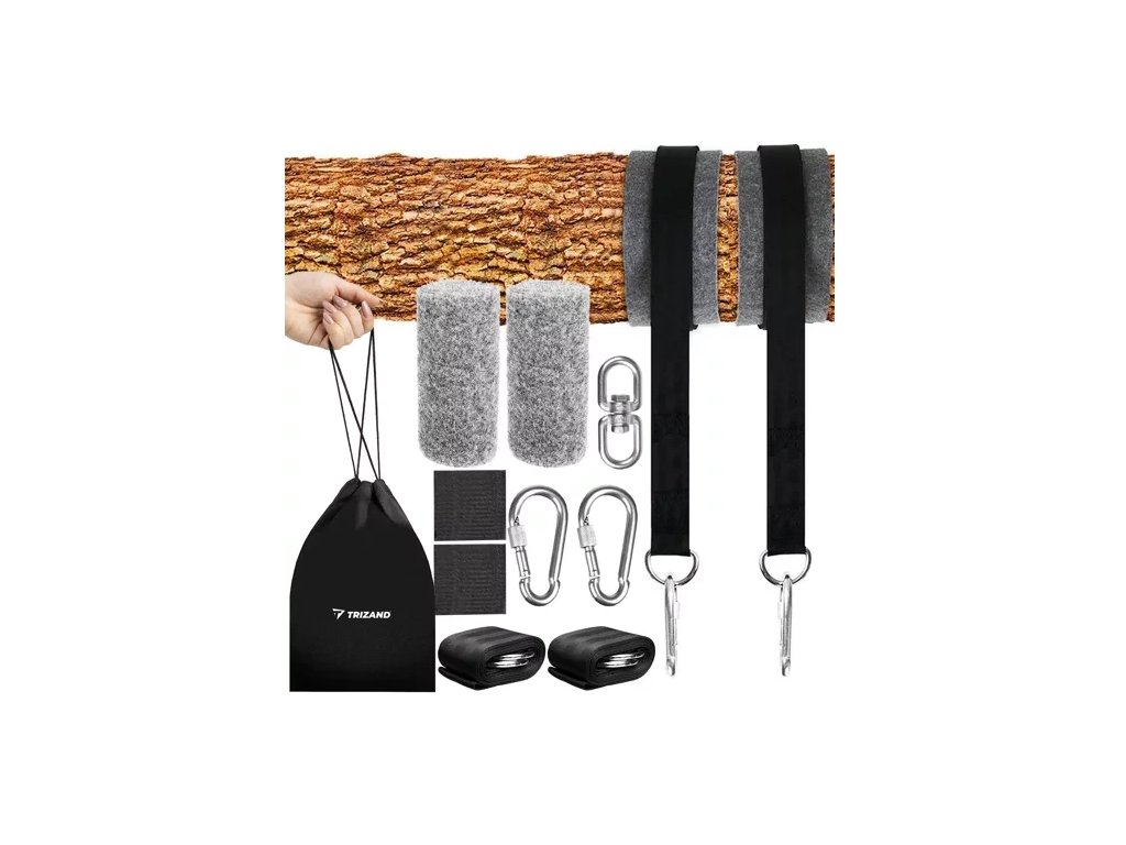 Součástí balení jsou 2 pevná nylonová lana, 2 kovové karabiny a 2 podložky, které zajišťují spolehlivé uchycení. Díky univerzální konstrukci lze sadu využít nejen pro houpací síť, ale i pro závěsné křeslo, zahradní houpačku nebo dětskou houpací sestavu.