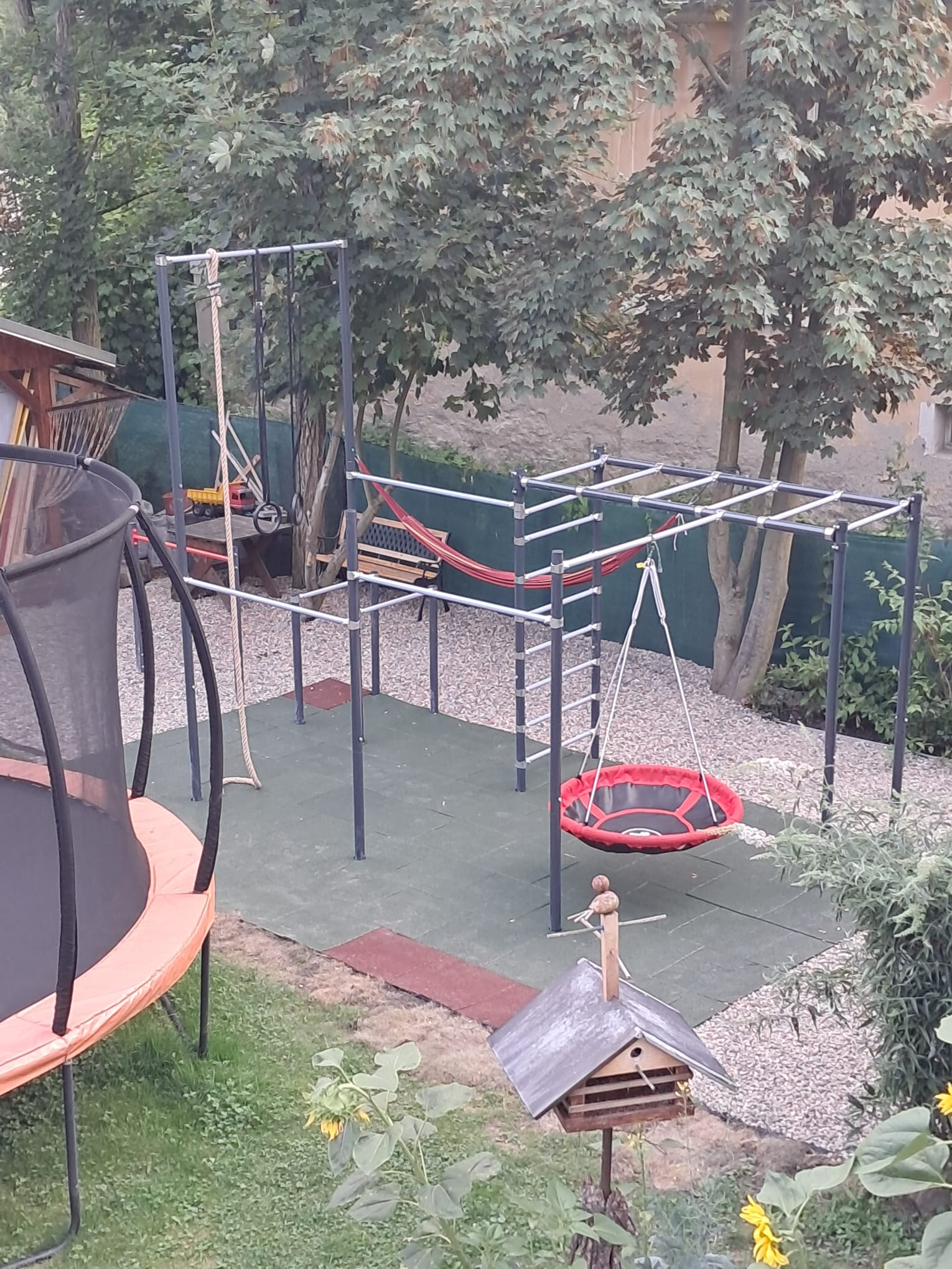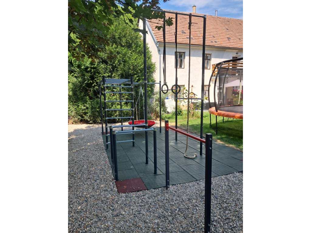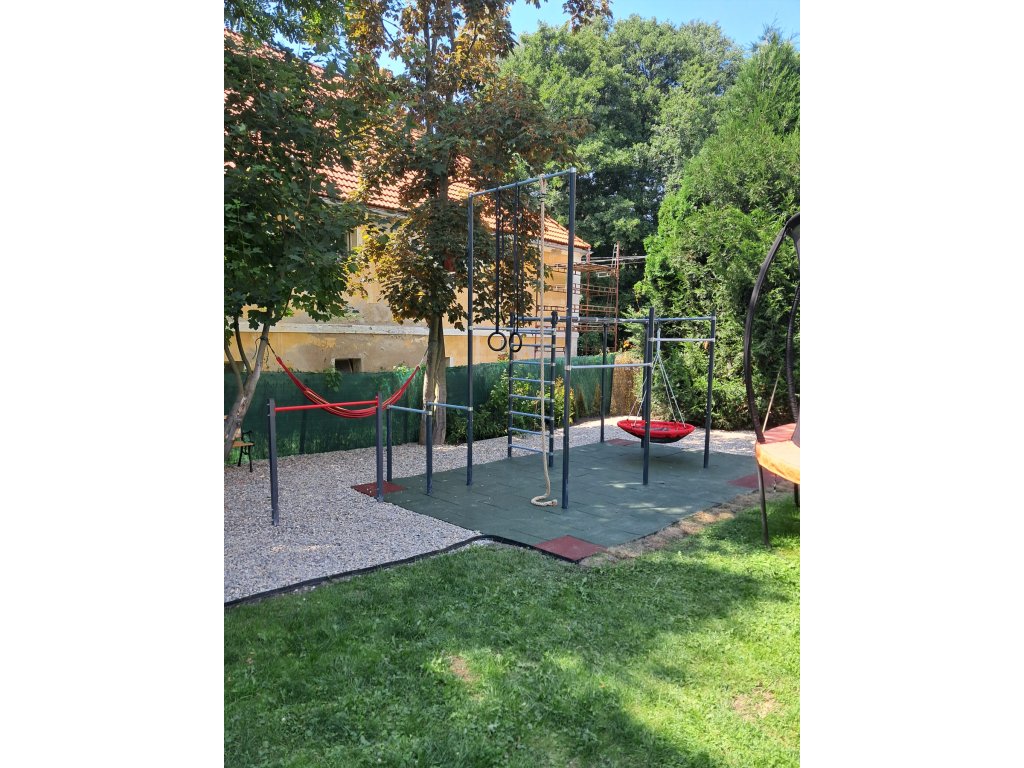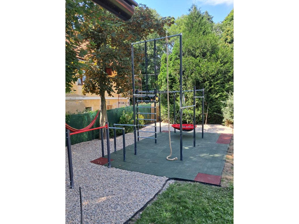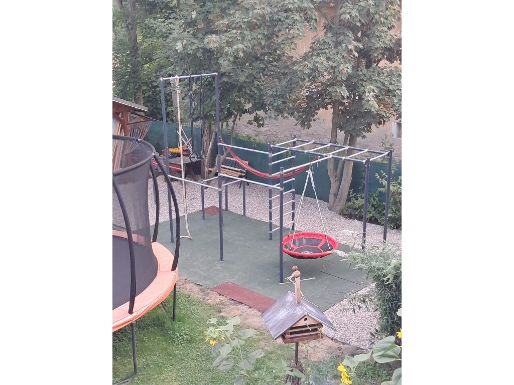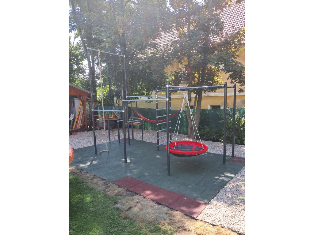 Sada má v nejvyšším bodě výšku 357 cm, tato výška vám umožní zavěsit lano, které k sadě přidáváme (lano je dlouhé 4 metry a má průměr 30 mm).