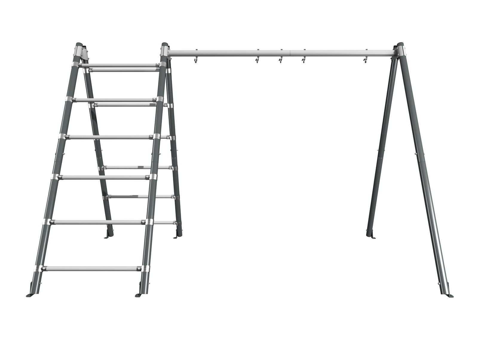 Tento kombinovaný houpačkový rám Vás přesvědčí svými variabilními možnostmi použití. K rámu můžete připevnit dvě herní zařízení, jako je třeba malá houpačka nebo i větší tzv, hnízdo. Vaše děti se tak nikdy nebudou nudit a může přijít letní sezóna. Navíc máte oboustranné žebřiny.