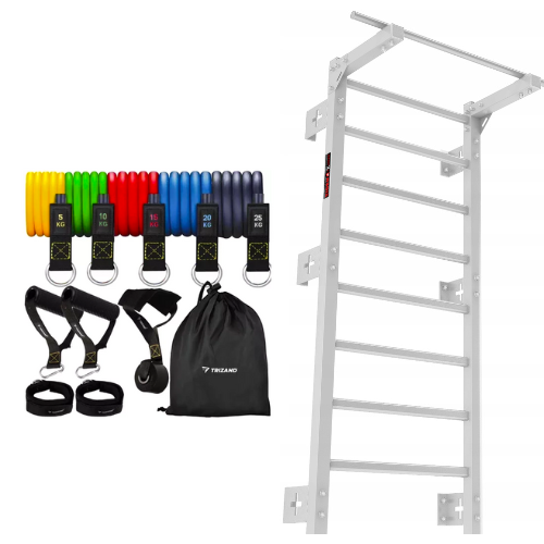 Žebřiny s hrazdou a posilovací gumy - Zider Profi šedá šedá barva