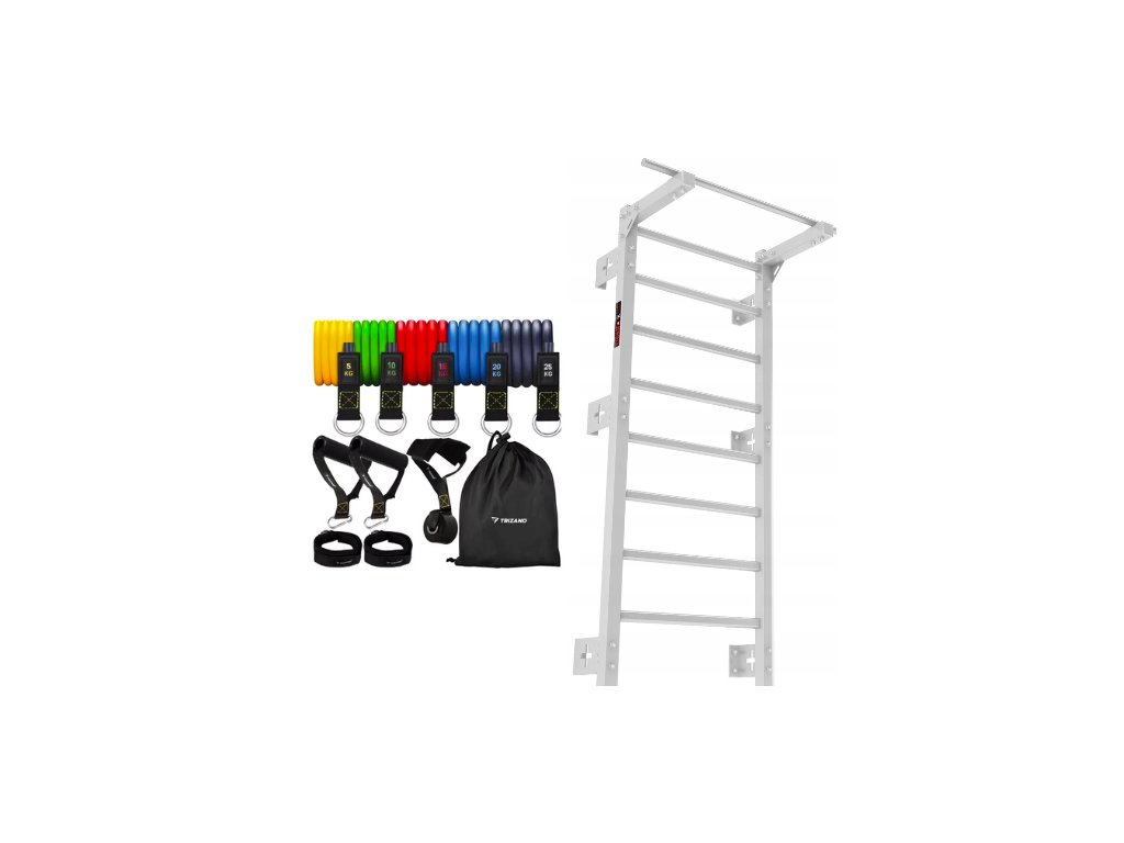 Žebřiny s hrazdou a posilovací gumy - Zider Profi šedá šedá barva
